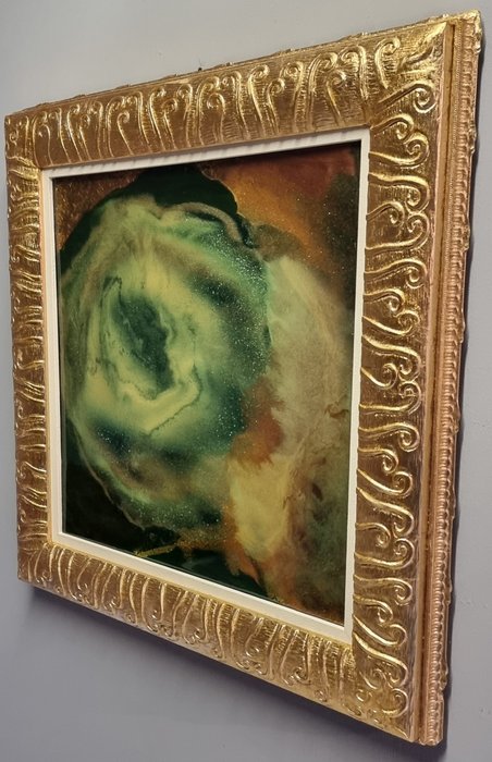 Schilderij gemaakt op paneel in acrylhars en steenpoeders, met toevoeging van gemengde materialen om de kunst vorm te geven en de volledige weergave van de (geheime wereld).