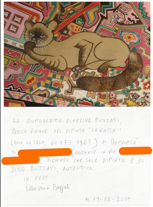 Eerste kat geschilderd door Dino Buzzati, niet aanwezig in het archief van de meester omdat het in 1963 rechtstreeks aan mijn grootvader werd geschonken.
