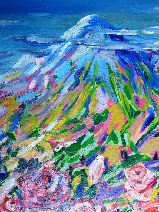 Dit kunstwerk is gemaakt in de beste tradities van de Europese schilderkunst. Een mooie combinatie van lyriek en expressieve energie van kleuren.