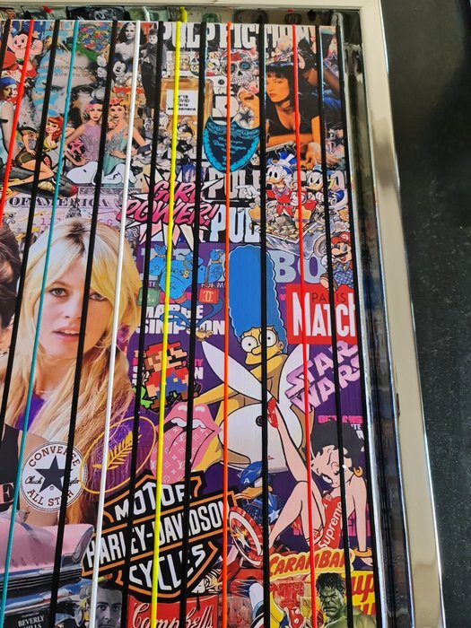 Gemengde techniek collages, acryl op 3D canvas (dikte 4,5 cm), met de hand gesigneerd en medeondertekend. Werk klaar om op te hangen!!