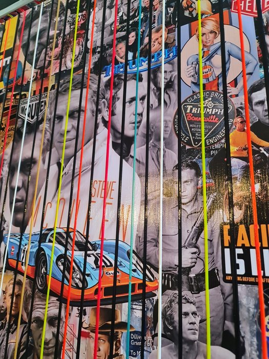 Gemengde techniek collages, acryl op 3D canvas (dikte 4,5 cm), met de hand gesigneerd en medeondertekend. Werk klaar om op te hangen!!