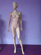 Deze vrouwelijke etalagepoppen van massief materiaal en met glazen voet kunnen worden gebruikt om kleding, pruiken of schoenen in etalages te presenteren. De mannequin bestaat uit 6 delen: hoofd, romp, rechterbeen, linkerbeen, linkerarm en rechterarm. Met beweegbare armen. De glazen voet met standaard zorgt voor stabiliteit.