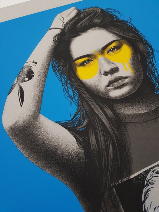 Dit zeldzame exemplaar meet 76 cm x 56 cm en wordt gepresenteerd op een hoogwaardige grijze kaart van 600 g/m². Genummerd, gesigneerd en in reliëf gemaakt door de kunstenaar. - Ook vergezeld van een COA.