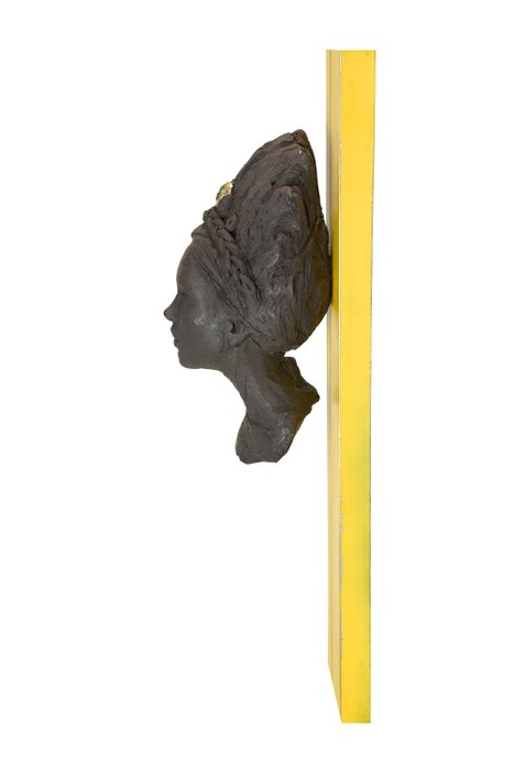 Dit werk, het resultaat van de 4-handige synergie, maakt deel uit van de "Het nieuwe tijdperk van het matriarchaat" "Matrilineaire" collectie, de gouden vulva in het midden van het haar, de lijn gekrast in de verf, symbolen gekozen door de auteurs voor alle vrouwen die grotere dromen hebben dan de kansen die het leven hen biedt. Gemaakt volgens de traditionele techniek van het kleimodel tot de mal, het is niet 3D-geprint met een machine en daarom zijn er, naast de artistieke waarde, verwerkingskosten waardoor het niet mogelijk is om aanbiedingen te accepteren die lager zijn dan de minimumprijs .