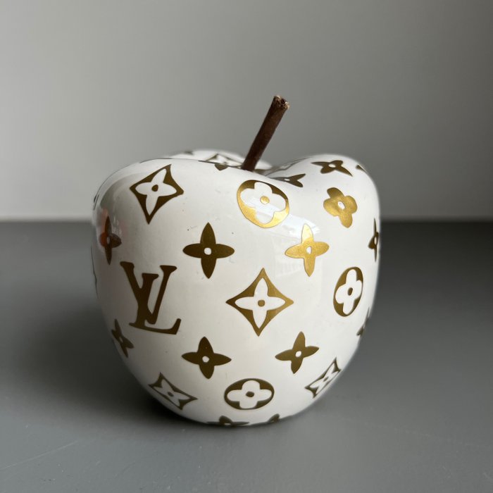 This luxury apple sculpture is an amazing eyecatcher. With LV on it is has a very clean look and feel, suitable for every house. The white / gold makes it an amazing and unique item to look at. It is perfectly finished with transparent coating.