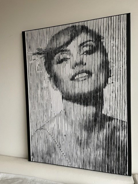 Dit schilderij is gemaakt in stripes/pop art stijl.Editie: original.Handgesigneerd (zie foto).Certificaat van Echtheid aanwezig (zie foto’s).