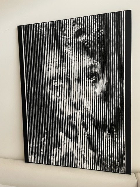 Dit schilderij is gemaakt in stripes/pop art stijl.Editie: original.Handgesigneerd (zie foto).Certificaat van Echtheid aanwezig (zie foto’s).
