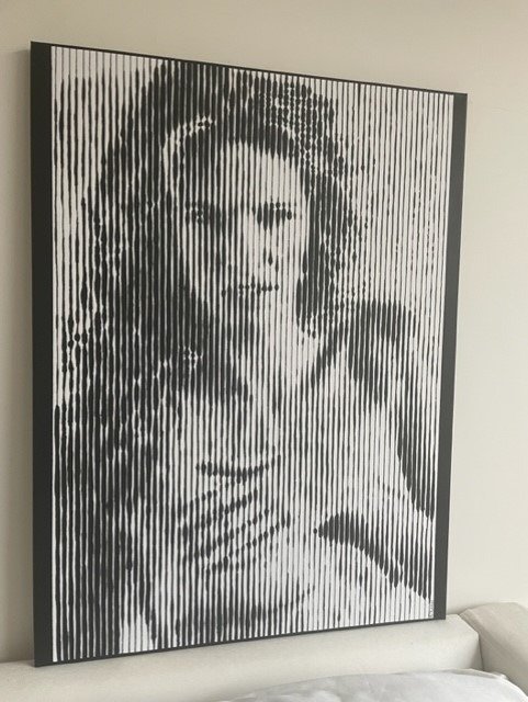 Dit schilderij is gemaakt in stripes/pop art stijl.Editie: original.Handgesigneerd (zie foto).Certificaat van Echtheid aanwezig (zie foto’s).