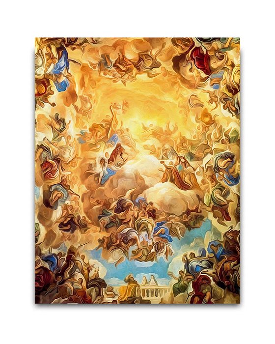 Het kunstwerk wordt gedrukt op canvas, met de hand gevernist met een speciale behandeling voor verlichting en kleurverbetering en bescherming tegen bederf. Het wordt opgerold op een buis geleverd.