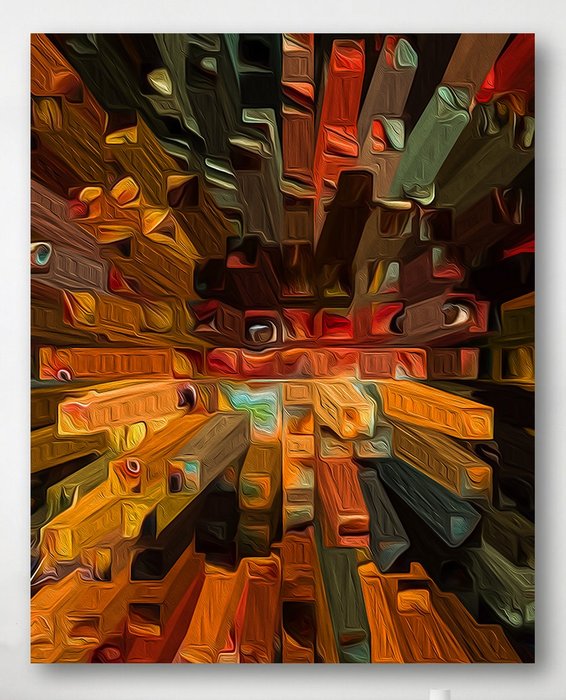 Het kunstwerk wordt op canvas gedrukt, met de hand gelakt met een speciale behandeling voor licht, kleurverbetering en bescherming tegen veroudering. Geleverd opgerold op een koker.