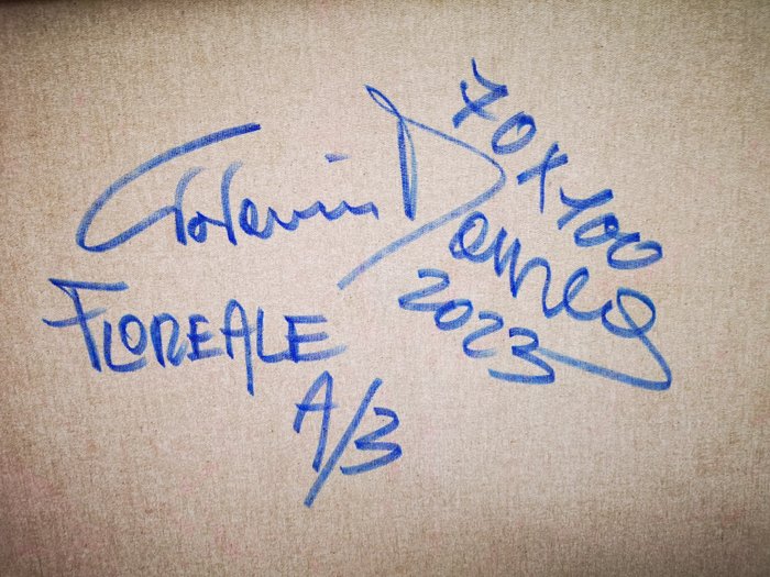 Vanwege de grootte van het werk wordt het schilderij verzonden zonder lijst (brancard) opgerold in een stevige beschermende koker, met een authentieke foto rechtstreeks ondertekend door de kunstenaar, DHL Express-koerier.