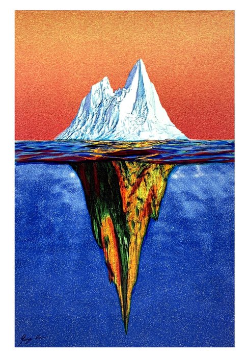 Dit unieke originele werk is gemaakt met mixed media als proefstudie voor de serie "icebergi" voor een eventuele uitgave in zeefdruk