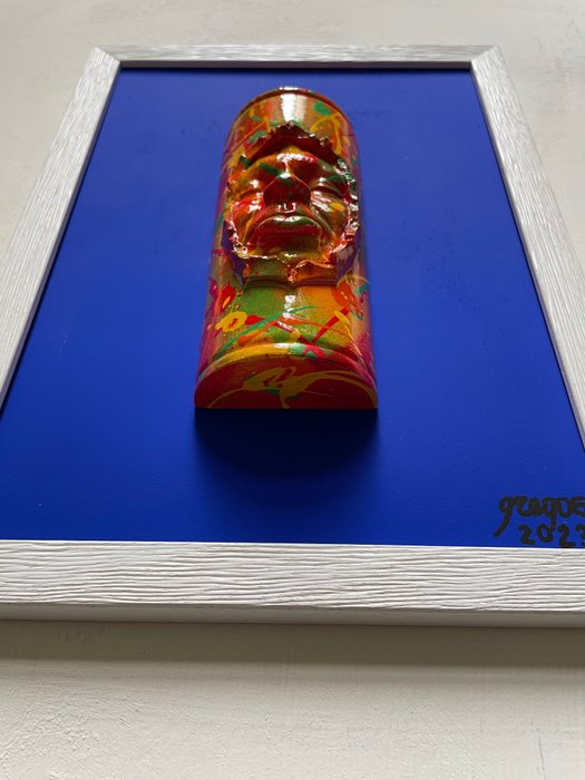 "Framed mockery spray can" gemaakt door urban artist (street art) Gregos, zonder hulp van een derde partij.