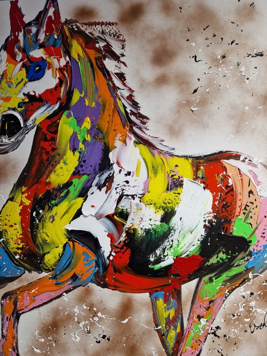 Uniek werk. Certificaat van echtheid aanwezig. Techniek: Paletmes acryl schilderij met grote dikte op linnen doek, gemonteerd op verstelbare houten brancard. Beschermd door een laag anti-UV-vernis.