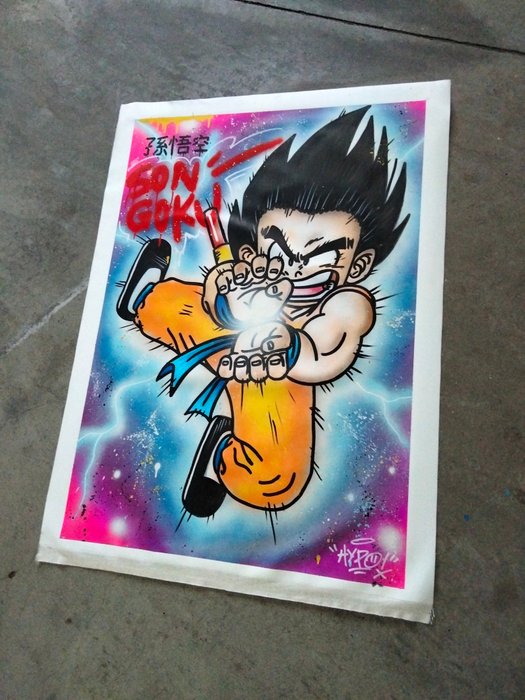 Handbeschilderd met spuitverf en acryl (UV) op doekmaat 110x80cm, schilderijmaat is 100x70cm, 5cm witte rand is rond het doek gelaten om in te lijsten, 100% katoen zuurvrij een medium korrel, drievoudige gipspriming, glanzende beschermende eindvernis.