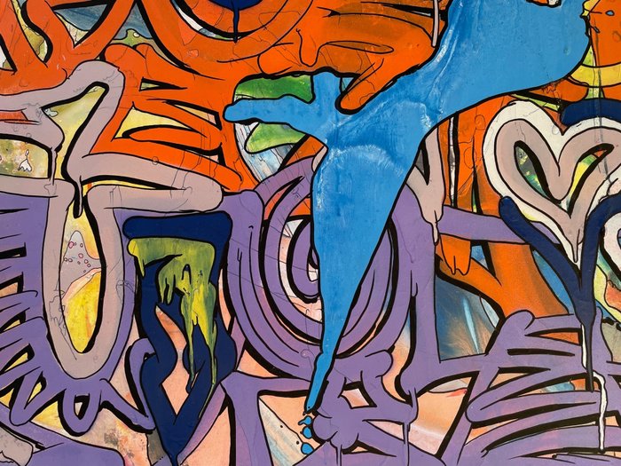 Techniek: spuitverf, acryl, stiften