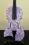 De paars-gouden kleuring op de viool met een witte achtergrond maakt het werk zeer elegant.