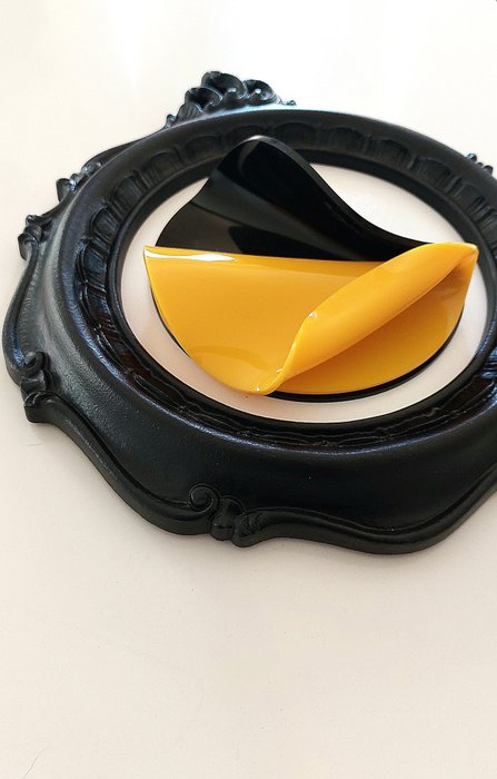 Deze is bewerkt door verbrandingsplexiglas, machinaal bewerkt en geplaatst in een professionele matzwarte linden lijst.