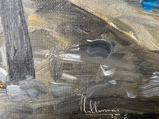 Een zeer interessant werk van Jaap Hillenius (1934-1999) in een surrealistische vorm, een gezicht op de haven, een interessante schildertechniek weerspiegelt perfect het kunstenaarschap van de kunstenaar en maakt moderne kunst tot iets dat iedereen thuis aan de muur zou willen hebben.