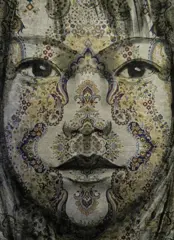 This is an unique piece of art, directly from the studio of the artist. A portrait of a girl, painted on a new, thin carpet with a beautiful pattern, with hanging mechanism. Definitely a conversation piece, and a statement in your room.