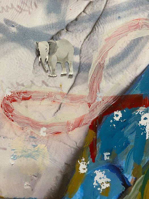 Gemengde techniek (afdrukken op portretcanvas in boetseerklei, acryl, collages, airsoft…)