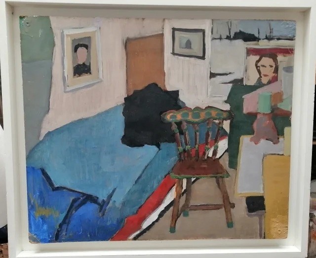 2 schilderijen olieverf op plaat 50 x 60 cm interieur en kerk met kippen prijs 250 euro