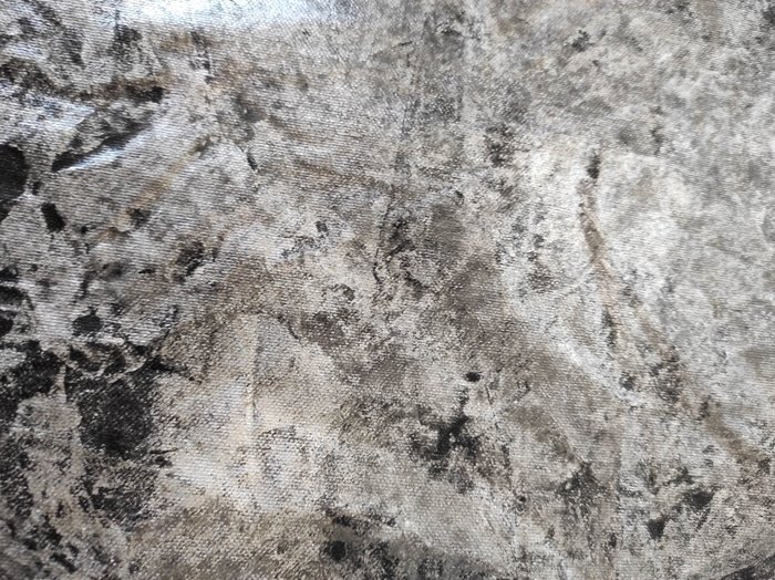 De basis van het doek is geheel beschilderd met een speciaal glanzend zilver, met zwarte ingrepen.