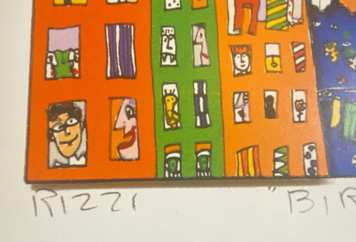 Deze magnifieke print van het museum 3D meesterwerk dateert uit 1994. Vroeg werk van de kunstenaar met de typische Rizzi Birds. Drukwerk van zeer hoge kwaliteit.