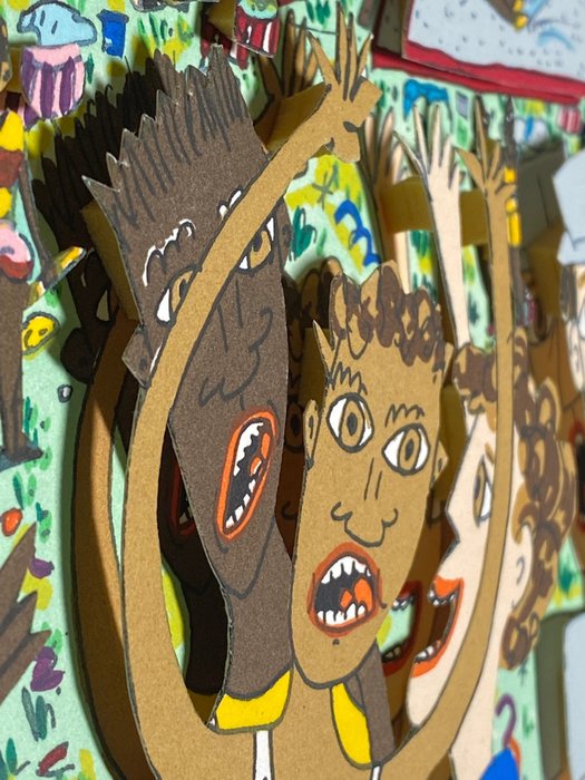 Dit is een zeldzame kans om een 31 jaar oude, originele, met de hand gesigneerde James Rizzi 3D-constructie te bezitten. Uitverkochte editie.