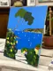 Acryl op canvas met een mes gemonteerd op een houten frame met sleutels. Foto's genomen voordat de vernis werd aangebracht om geen reflecties te hebben..