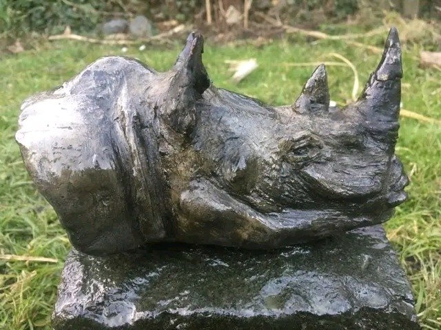 Neushoornhoofd op een steen