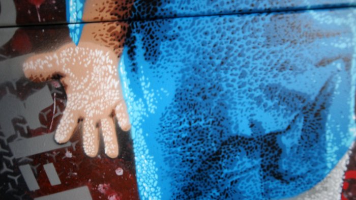 Het werk "Talibé" is gemaakt met behulp van handgesneden stencils. Ongeveer 130 uur knippen om de verschillende stencils te maken.