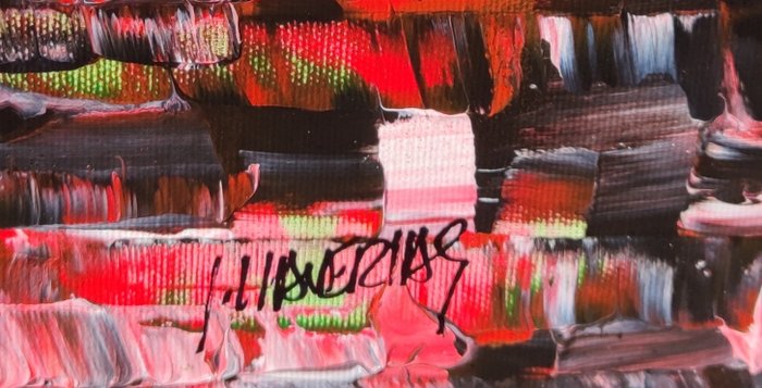 Het schilderij is gemaakt met acryl en fijne vernissen met een glanzende afwerking.
