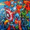 Kunstwerk handgeschilderd met acrylverf en andere picturale technieken op canvas van hoge kwaliteit op digitale collage door de beroemde spaanse kunstenaar Joaquim Falcó (1958).