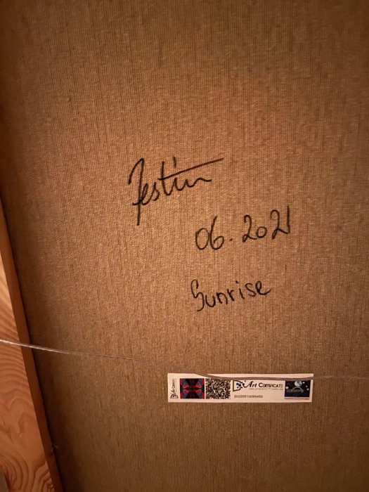 Uitstekend ingelijst schilderij van een zonsopgang door Yohan Festing.