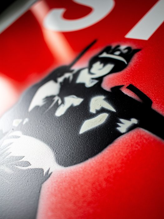 Dit werk is gemaakt op een stalen verkeersbord, 50 x 50 cm.
