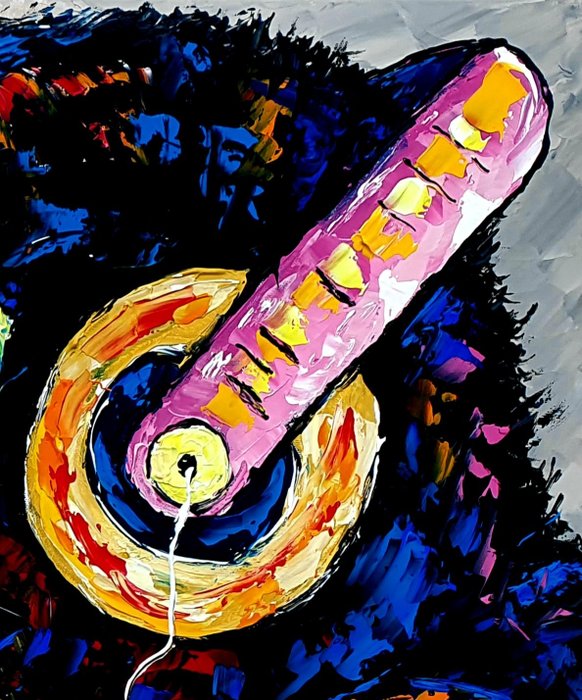 Origineel abstract expressionistisch schilderij uit serie ''story of Mr.George'' van Nederlandse professionele hedendaagse kunstenaar Jovan Srijemac (1962). Werk is geschilderd met pallets met acryl verf op canvas. Verf is expressief en met veel dynamiek op doek. Gevernist, en met certificaat van echtheid