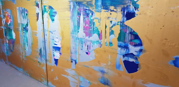 Abstract schilderij op doek van de Oostenrijkse kunstenaar Jürgen Angeler. Geschilderd met hoog gepigmenteerde acrylverf.