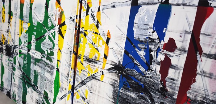 Abstract schilderij op doek van de Oostenrijkse kunstenaar Jürgen Angeler. Geschilderd met hoog gepigmenteerde acrylverf.