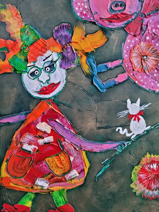 Olieverf geschilderd met een spatel op katoenen canvas 2x30x40