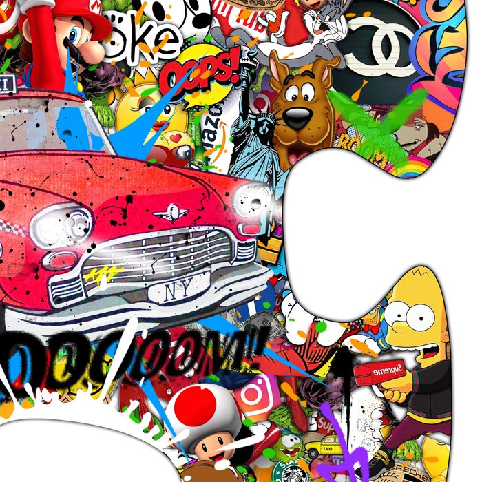 Cab One van Lascaz is een kunstwerk gemaakt in gemengde techniek op aluminium en gelakt voor een hoge intensiteit van kleurweergave, een glanseffect en een duurzame bescherming van de creatie.