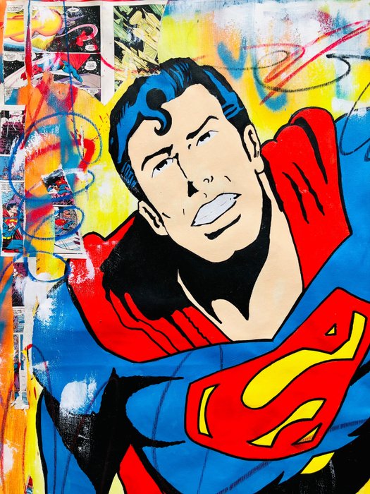 Volledig met de hand gemaakt met acrylkleuren, collages, pastelkleuren en spuitverf op canvas. Het versleten / verbruikte effect van het canvas maakt deel uit van de bijzonderheid die de kunstenaar op het werk wenst en moet niet worden opgevat als een defect, maar als een detail van uniciteit.
