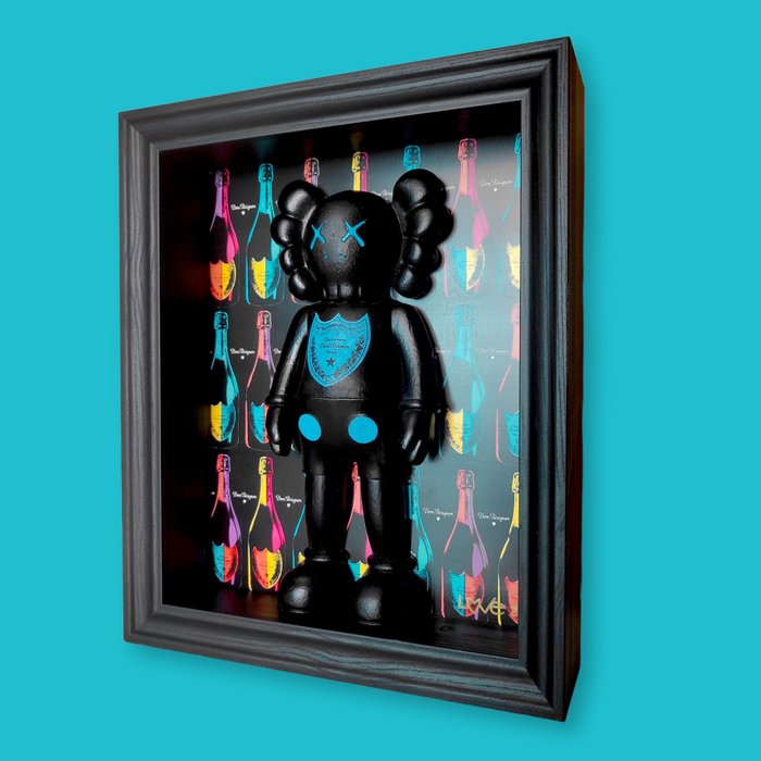 Fantastisch 3D beeld gemaakt van resin, een eerbetoon aan Kaws waar de kunstenaar kleur geeft met spuitverf.