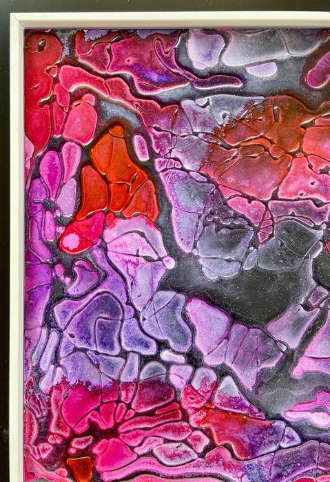 Gemengde techniek op aluminium, acryl, inkt, hars, vernis