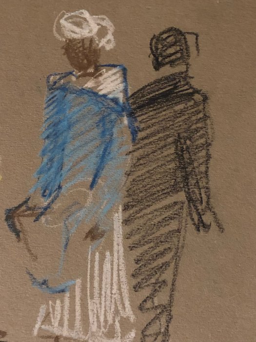 Deze krijttekening komt uit de achtergrond van het atelier van de kunstenaar