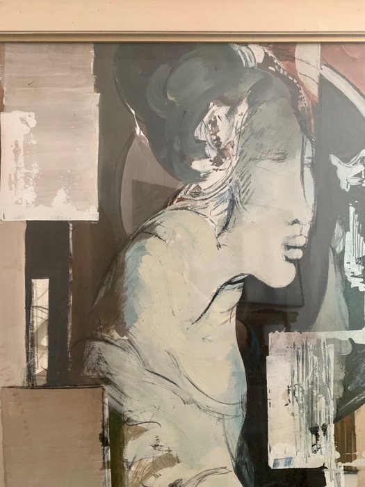 Techniek: gemengde techniek op papier gelijmd op houten paneel