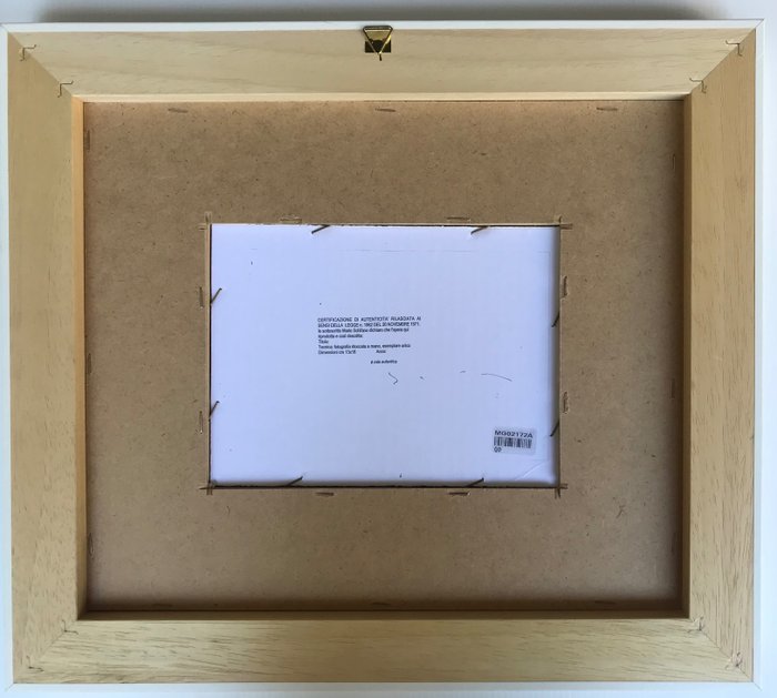 Gemengde techniek op foto met de hand geretoucheerd met email, titel "Indefinito Verde", met elegante witte houten lijst en glas. Het werk is gearchiveerd bij Fondazione Mario Schifano met geen. F9097-4402 en gepubliceerd in de oeuvrecatalogus op pagina 420, waarvan een kleurenfotokopie zal worden gegeven. Bijgevoegde documenten van de stichting en foto van de cataloguspublicatie.