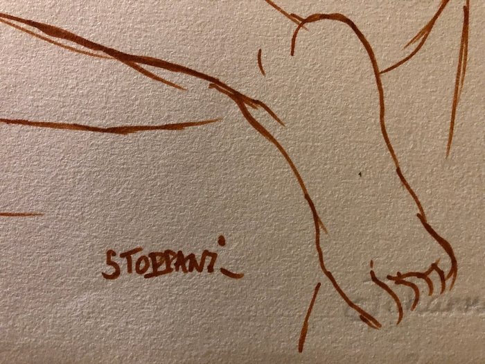 Originele tekening van Maurice Stoppani (1921-2012) schilder uit Lyon die tekenleraar was aan het Lycée du Parc. Deze viltstifttekening komt uit de bodem van het atelier van de kunstenaar. Het uitbeelden van een naakte vrouw is een van zijn grafische specialiteiten.