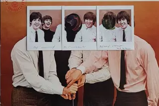 Werk van Maurizio Galimberti Kant en klare fuji instax 3 polaroid op omslag met originele Beatles 1978 Beatles VI plaat. Archief 22_0894.