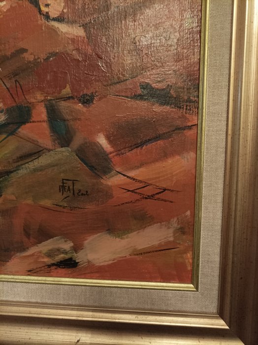 Schilderij in uitstekende staat uit 2002 gesigneerd M.Feat die de Glénans-archipel vertegenwoordigt.